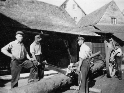 1952 | – | Nach den Kriegsjahren wird der Betrieb an die nächste Generation weitergegeben, das Sägewerk vom Mühlenbetrieb getrennt und von Gerhard Ebert geführt. | ![]() |