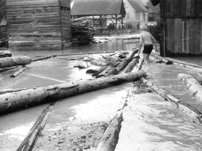 1969 | – | Das Jahrhunderthochwasser verschont auch unser Sägewerk nicht und richtet erhebliche Schäden an. Glücklicherweise blieben wir bis heute vor weiteren Katastrophen oder Bränden verschont. | ![]() |