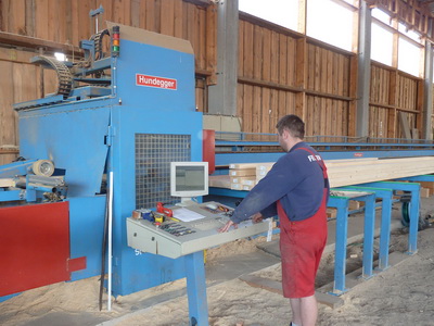 Ihr Listenbauholz schneiden wir auf unserer modernen Hundegger SpeedCut Kappanlage computergesteuert +/- 5mm auf Wunschmaß und etikettieren dies entsprechend. Auch einfache Abbundleistungen können auf diese Weise maßgenau übernommen werden.